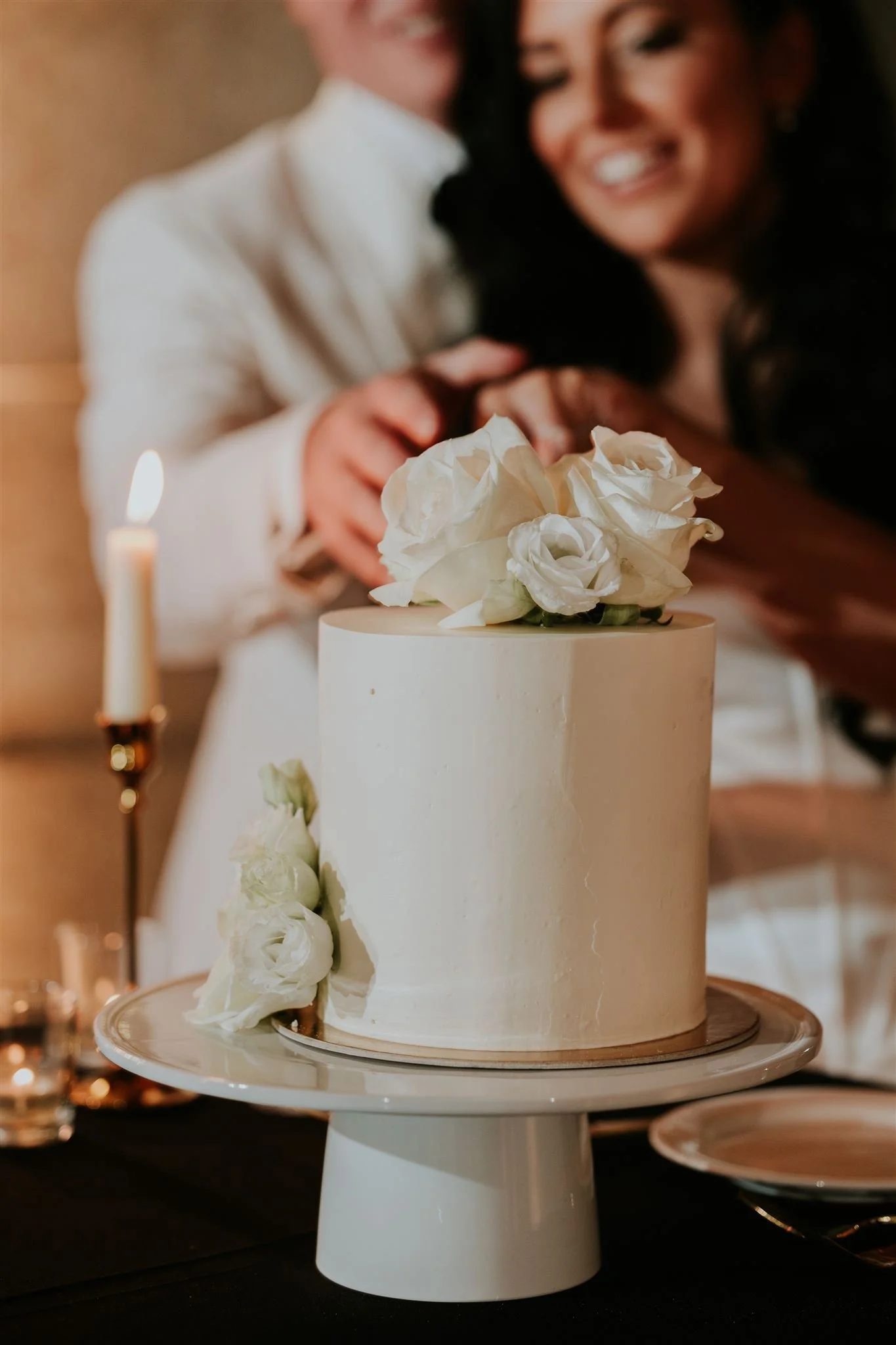 Following the ceremony, guests gathered for a champagne toast before moving into the reception. The evening was filled with incredible energy, brought to life by Pez Productions, who kept the dance floor full well into the night. Dinner concluded with a stunning cake by Whippt, adding a final sweet detail to the beautifully curated design.
