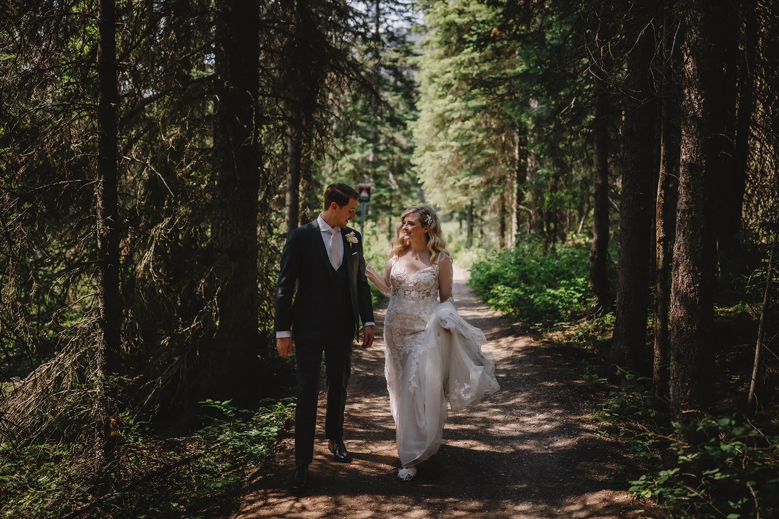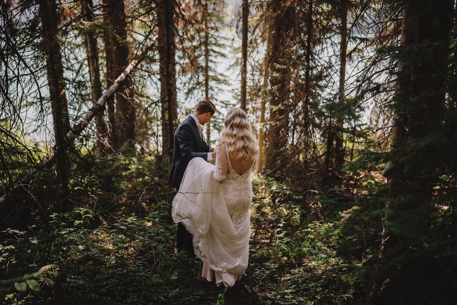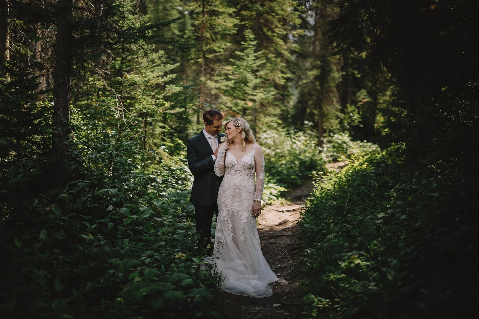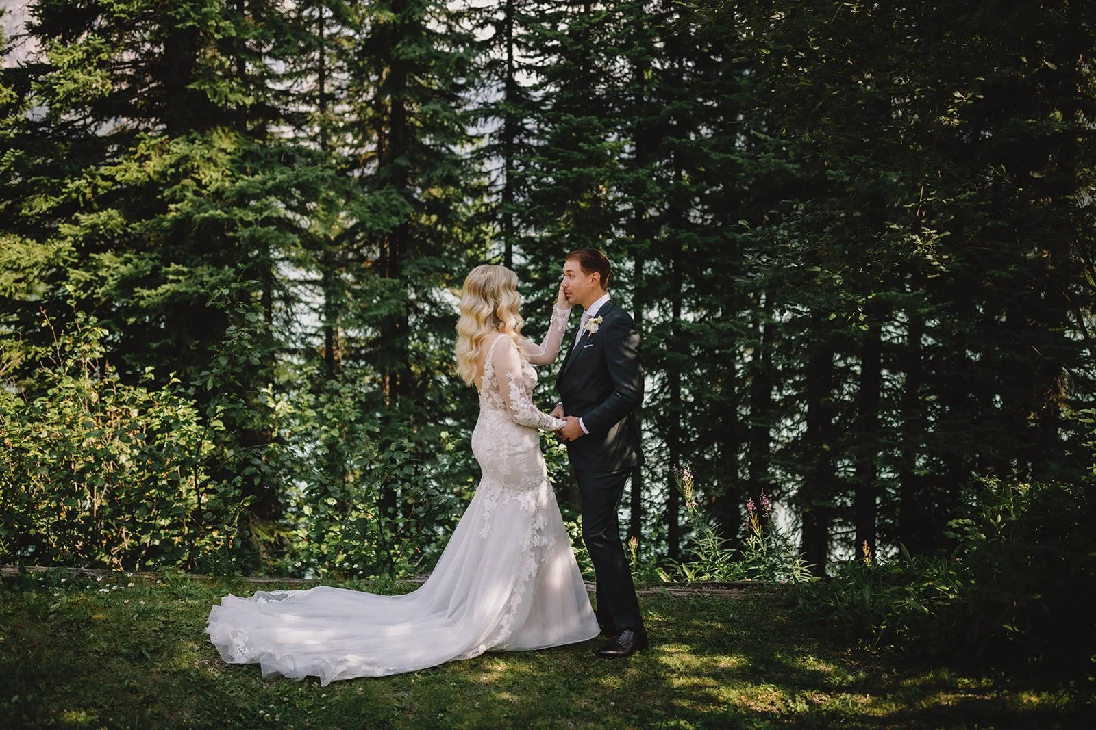 They chose to begin the day with a private first look near the lodge, captured by Gabe McClintock. It gave them a quiet moment together before everything began and set the tone for a day that felt intentional without being over-scheduled. From there, they moved into portraits around Emerald Lake, making the most of the turquoise water and mountain backdrop.