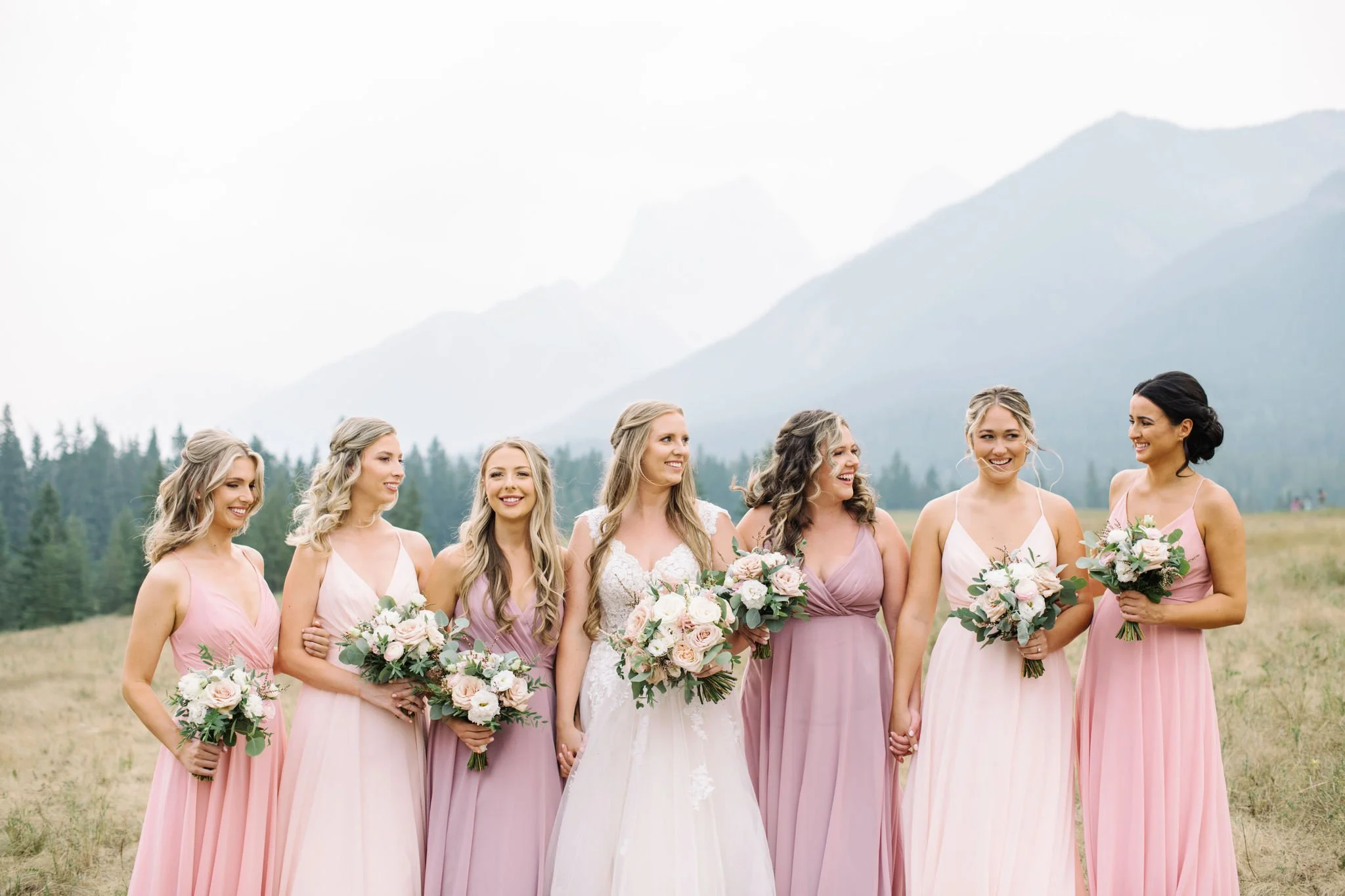On a breathtaking August day in Canmore, Alberta, Lindsay and Nick exchanged vows against the stunning backdrop of the Rocky Mountains, surrounded by their closest family and friends. Their morning began in their suites, with Nick getting ready alongside his groomsmen and Lindsay with her bridesmaids. Before the ceremony, they shared an intimate first look in nature, a heartfelt moment beautifully captured by Corrina Walker Photography. After a dreamy photo session with their wedding party, they made their way to the ceremony at Silvertip Resort’s jaw-dropping gazebo. Adorned with lush roses and greenery from Willow Flower Co., the setting was nothing short of magical. It was the perfect space for Lindsay and Nick to say, “I do.” A touching ceremony was followed by a champagne toast, and just like that, they were officially married.