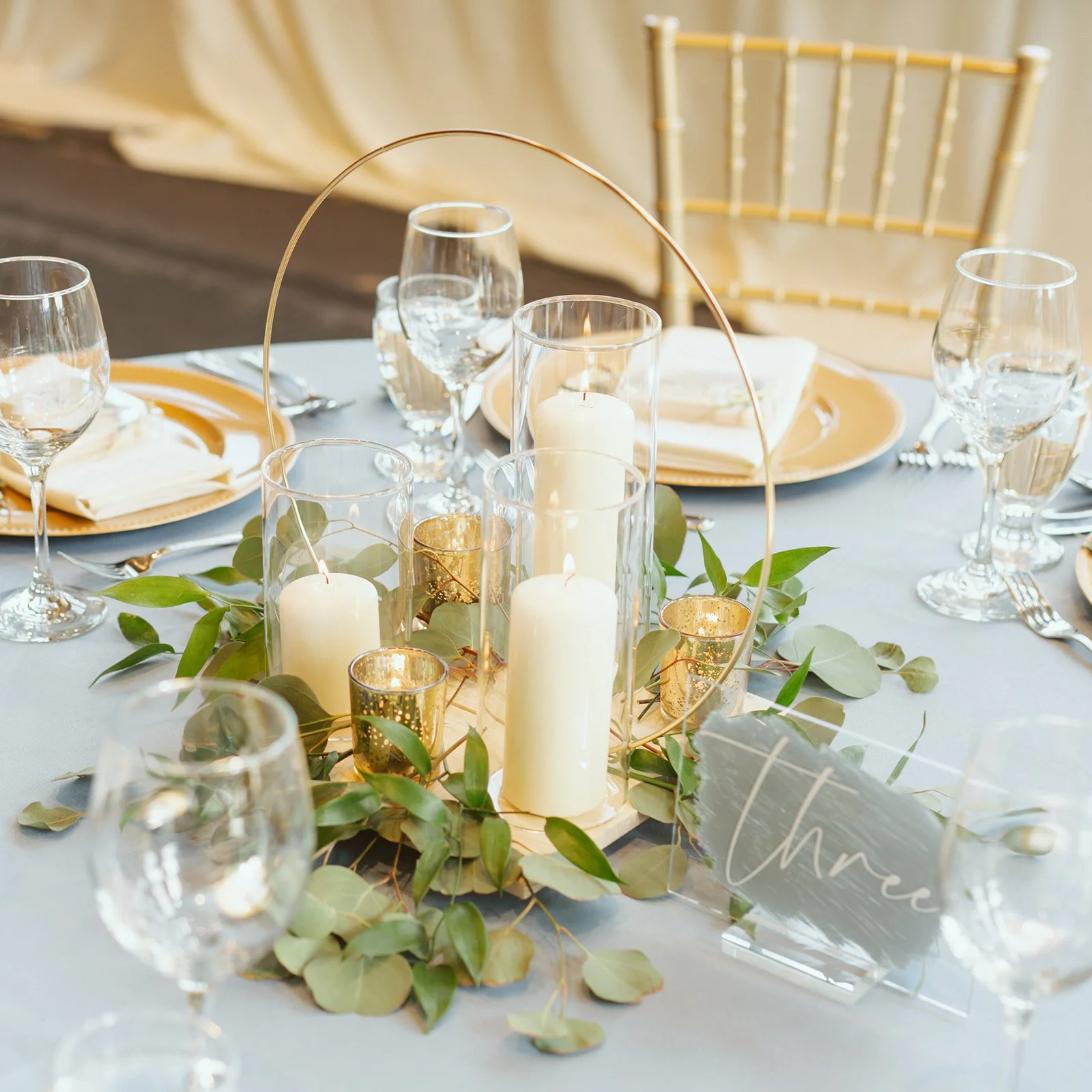 The reception was a vision of elegance, perfectly complementing the soft spring day outside. The Malcolm Hotel’s grand ballroom, with its floor-to-ceiling windows, bathed in golden sunlight, was decorated with exquisite floral arrangements from Blue Lake Floral Design. White, gold, light blue, and abundant greenery created a delicate yet sophisticated ambiance, evoking the freshness and beauty of spring.