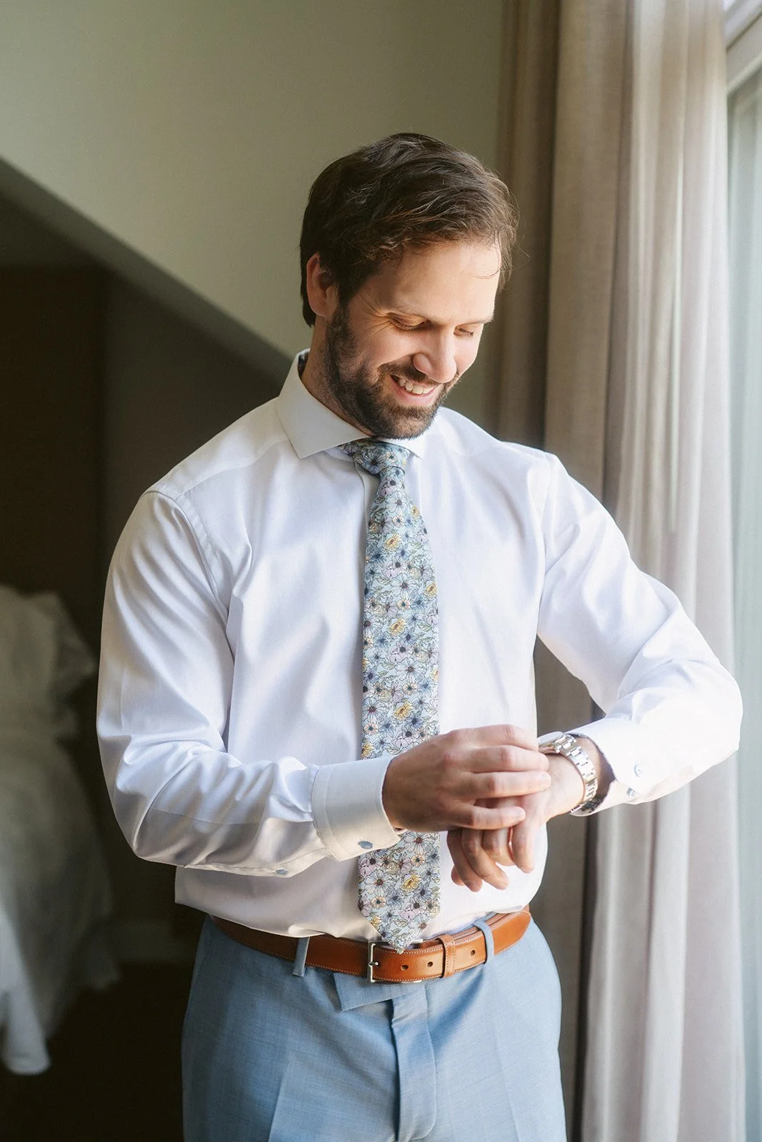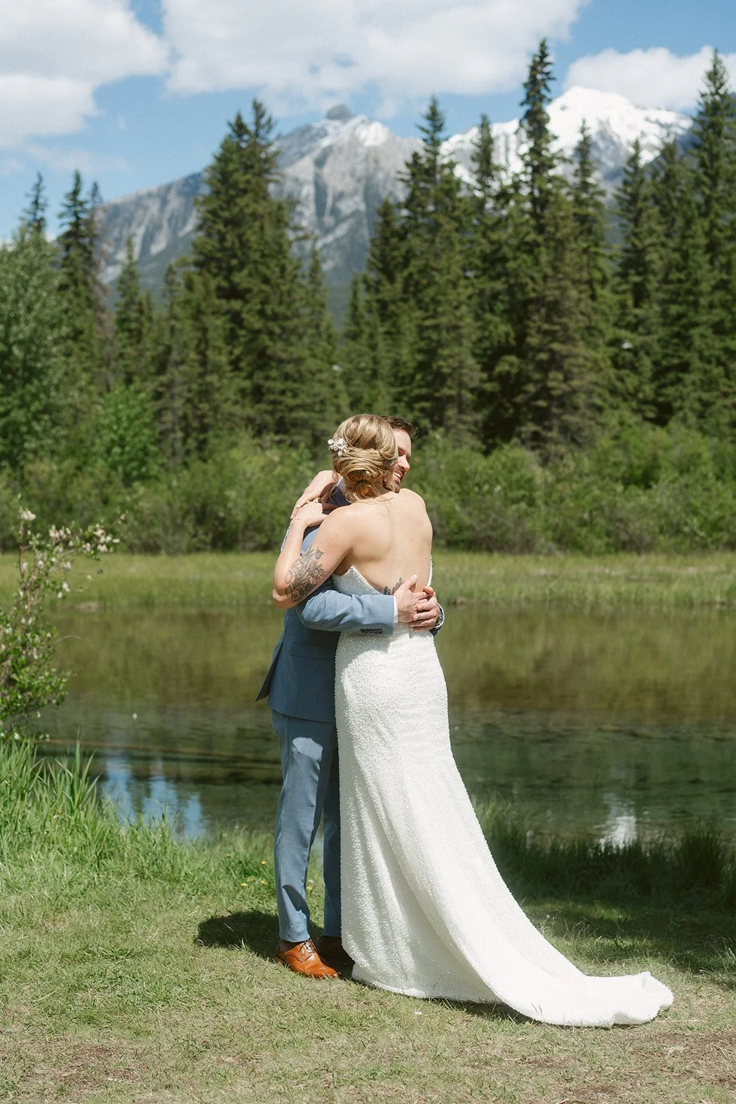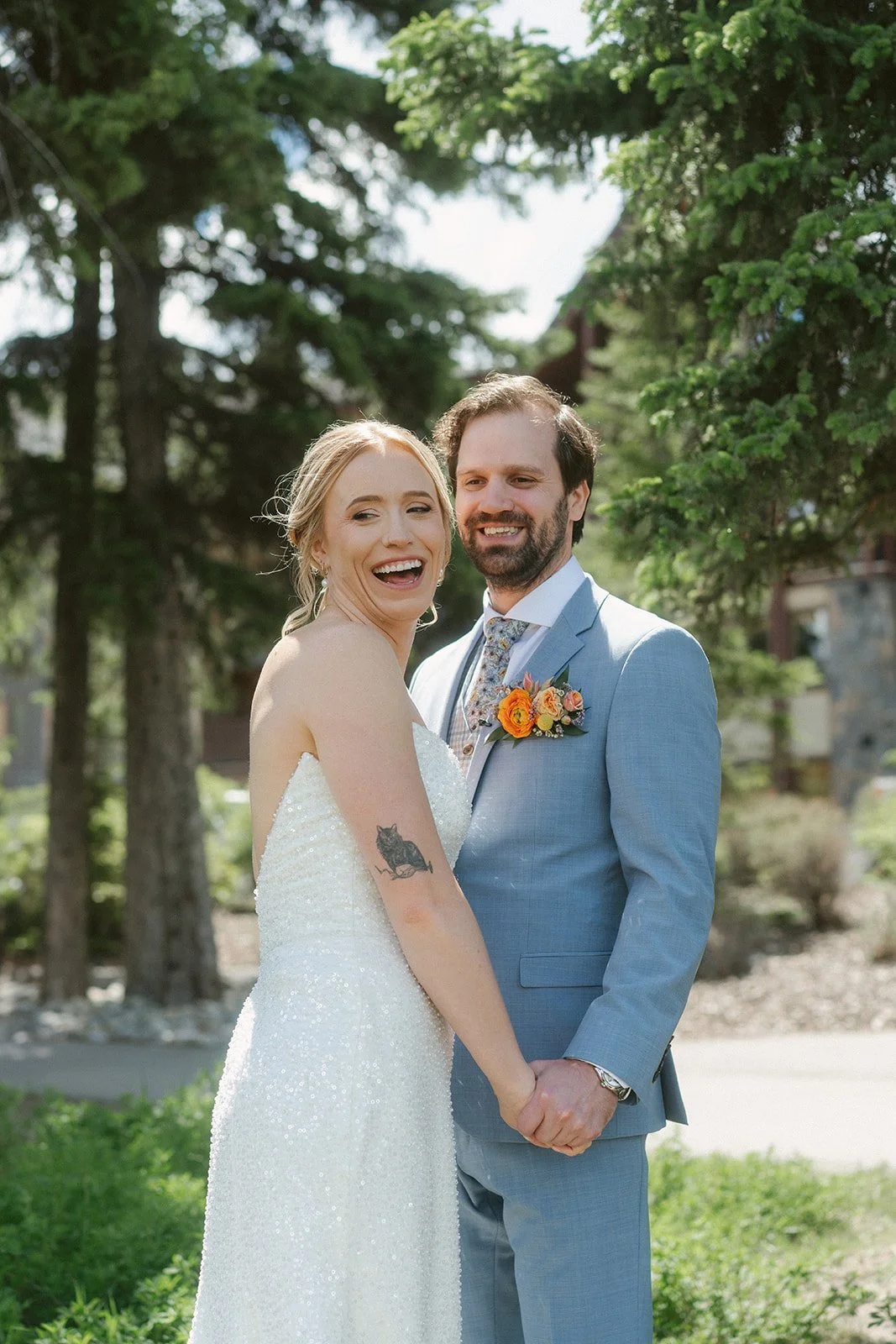 The couple shared a beautiful first look along the creek just outside the hotel, captured effortlessly by Black + White Photo & Film. Surrounded by the quiet movement of water and the stillness of the mountains, it was a moment that felt both grounding and electric. There is something undeniably magnetic about Lisette and Chris. Together, they bring light, laughter, and an effortless sense of connection that you feel instantly.