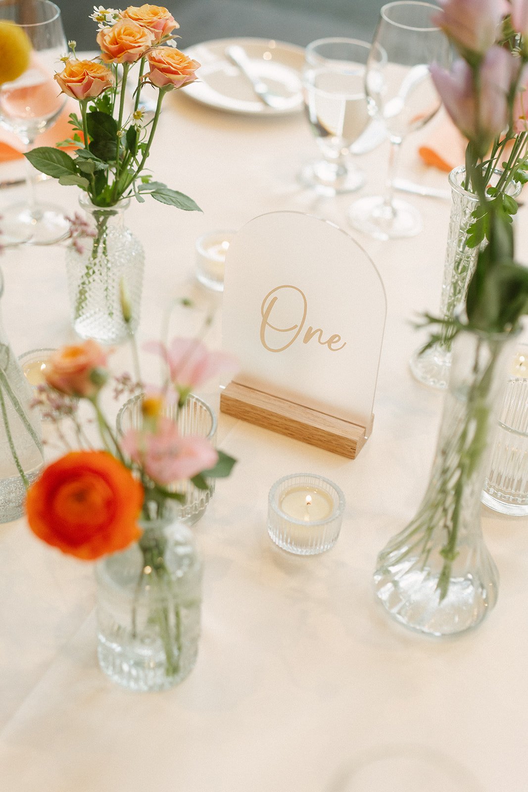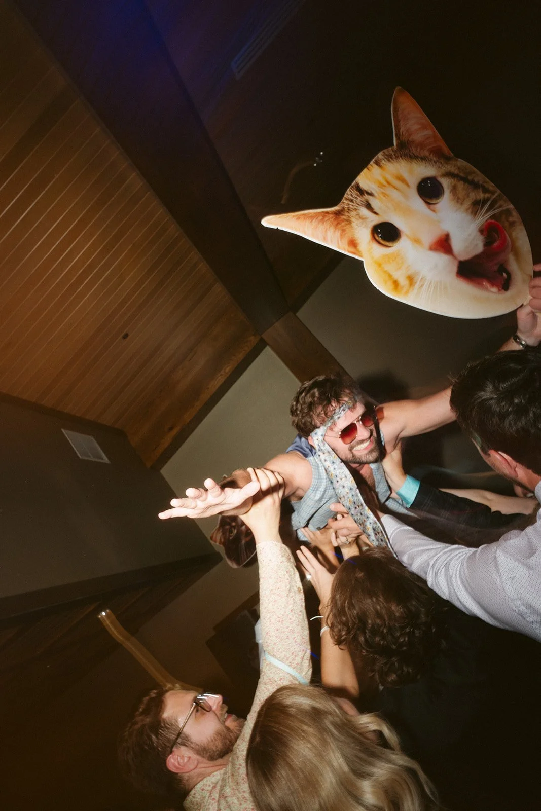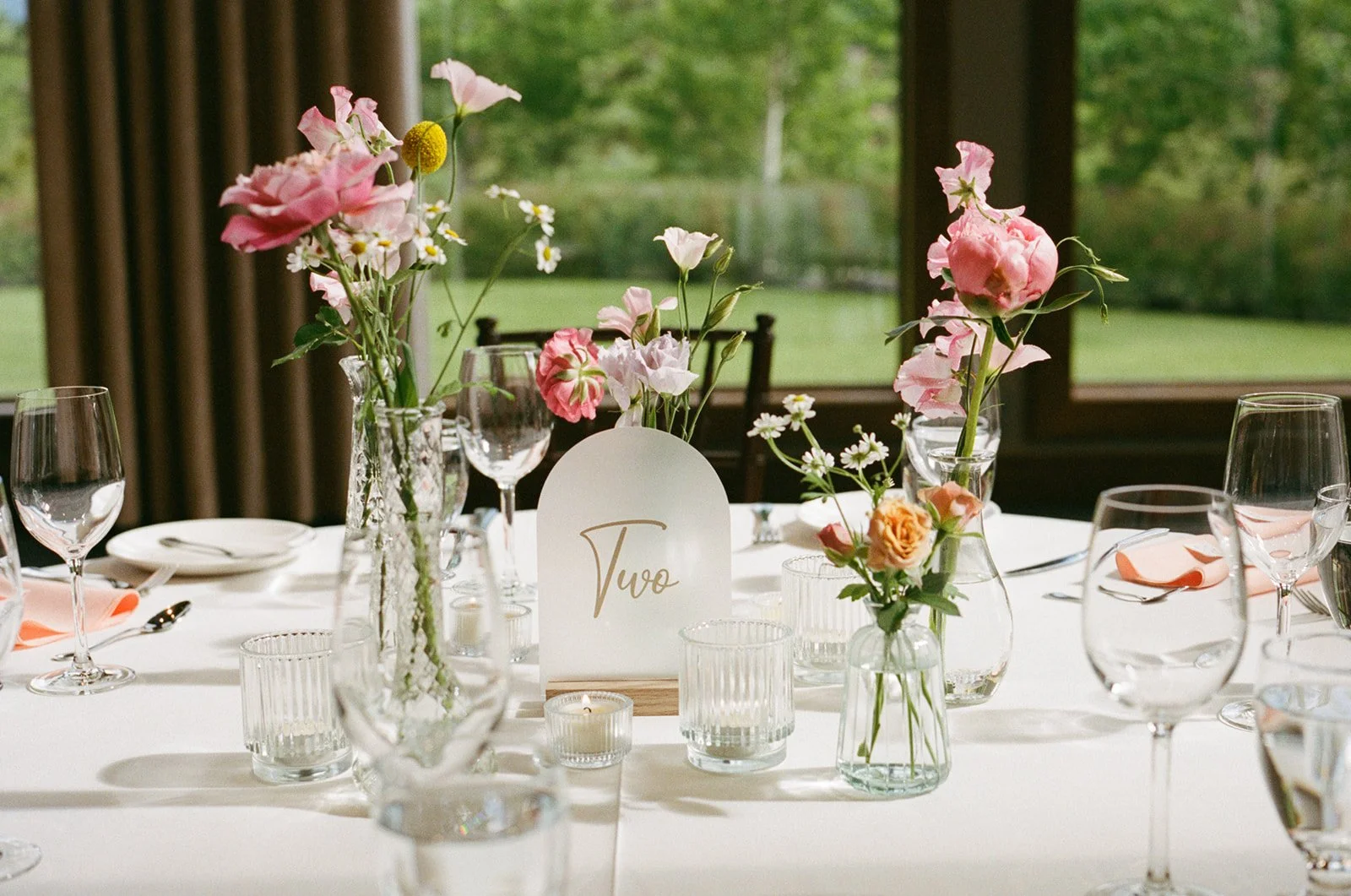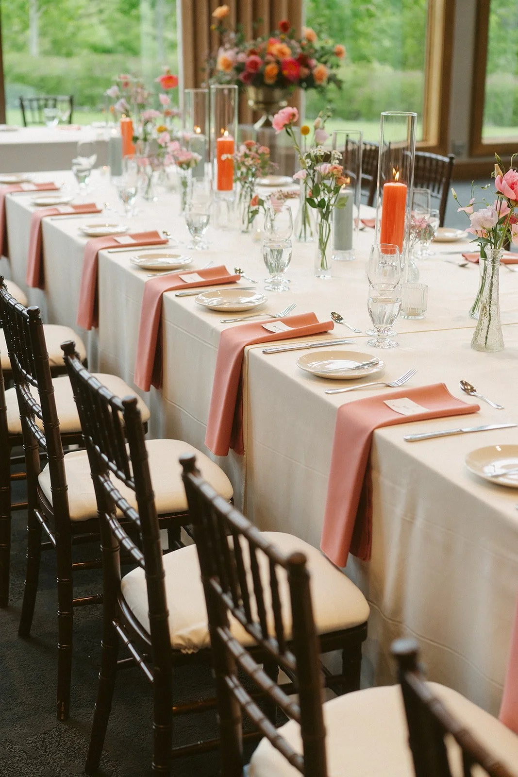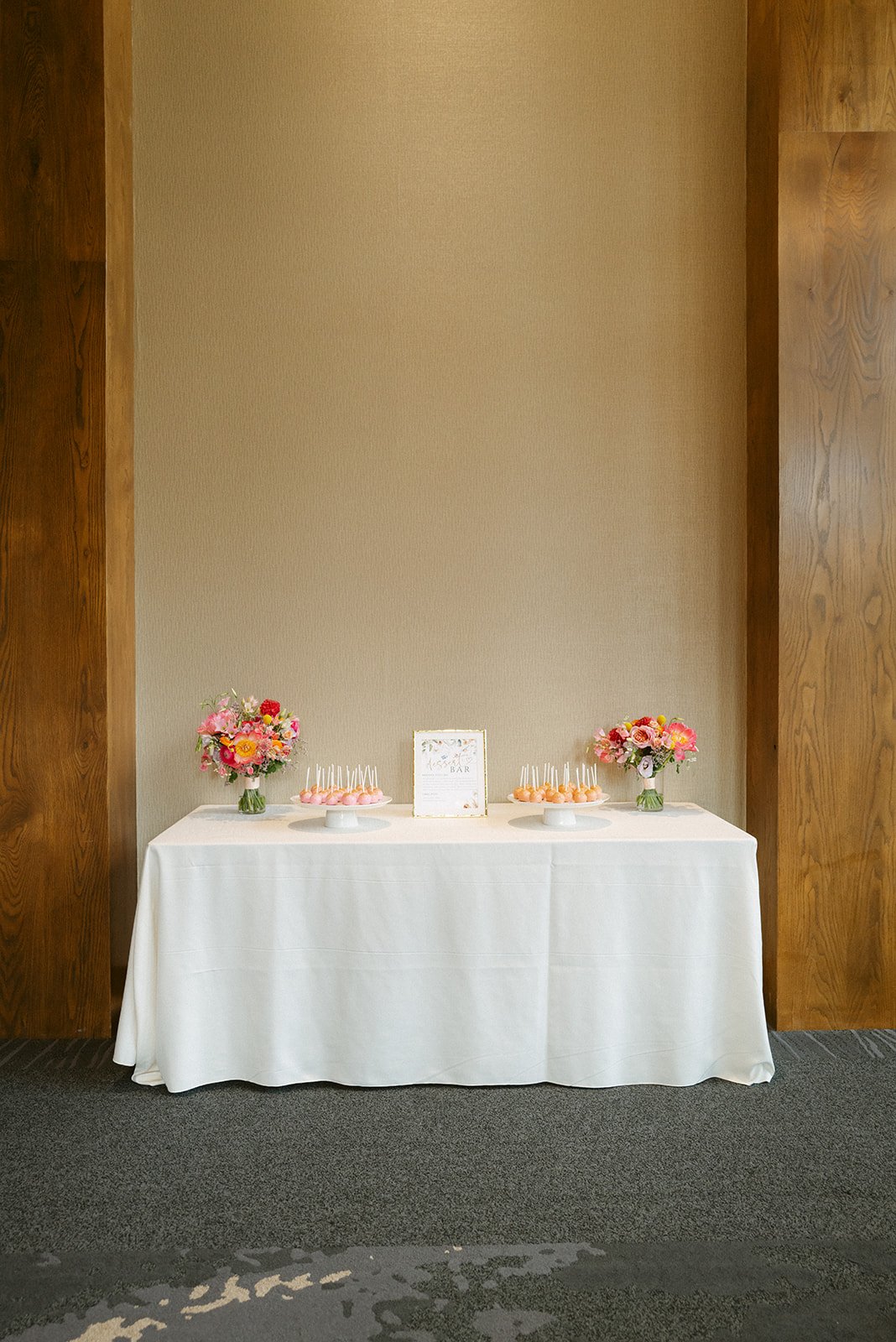 Inside the Malcolm’s stunning ballroom, the celebration transitioned seamlessly into an elevated, light-filled reception. Floor-to-ceiling windows showcased the surrounding peaks, while thoughtfully curated décor and rentals from Mountain Event Rentals layered texture and warmth into the space. The design carried through the vibrant palette from earlier in the day, creating a cohesive atmosphere that felt both elevated and inviting.
